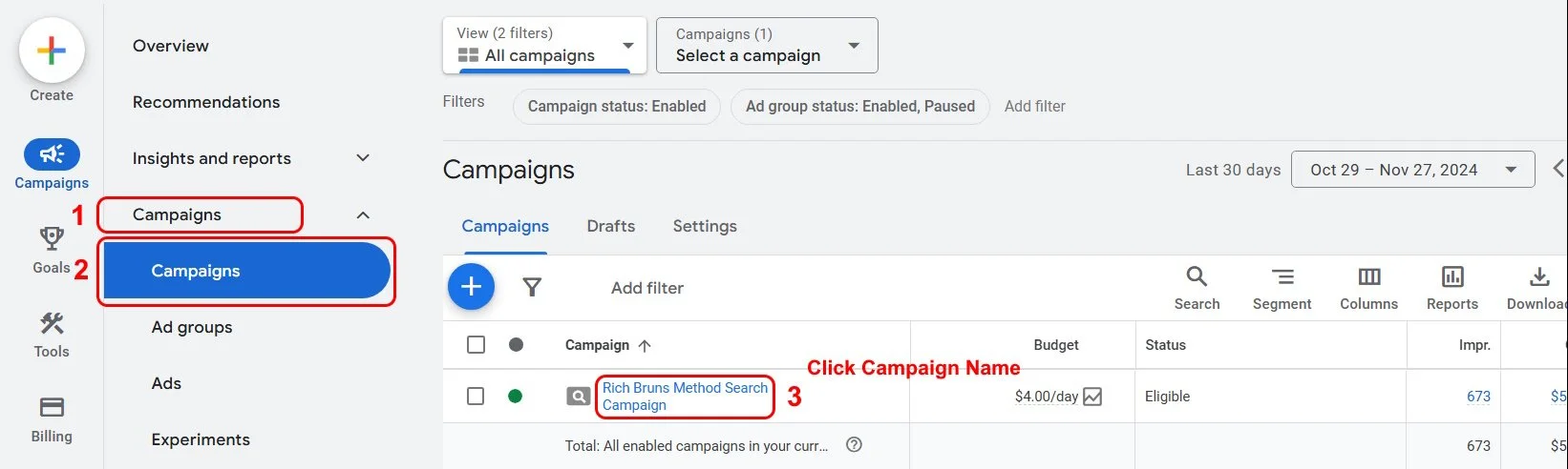 3 click your search campaign name