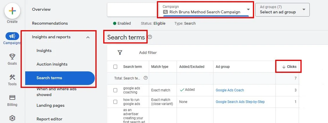 Clicks cost you money - focus on these important Search Terms first, as you move down the page.
