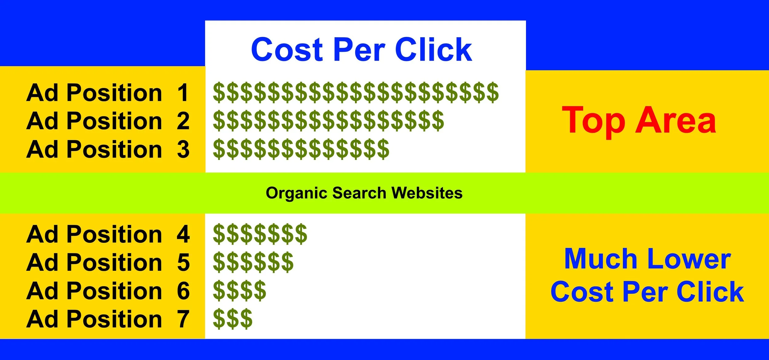Your ads run almost every search, 80% of the time above Organic Search Websites.